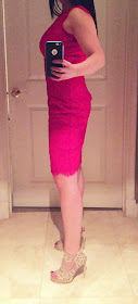 I ended up getting this dress in size 0. I also tried on size 2 in black, which could have worked as well. It had slightly more room in the waist and hips so it's probably just a matter of personal preference. I decided I wanted the red one, and size 0 was the only one they had left. So I went with it. The lace is stretchy anyway, so it's still very comfortable.